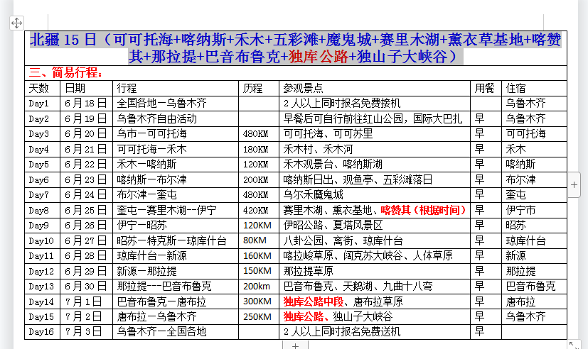 目的地:喀纳斯、禾木、伊犁、巴音布鲁克、独库公路