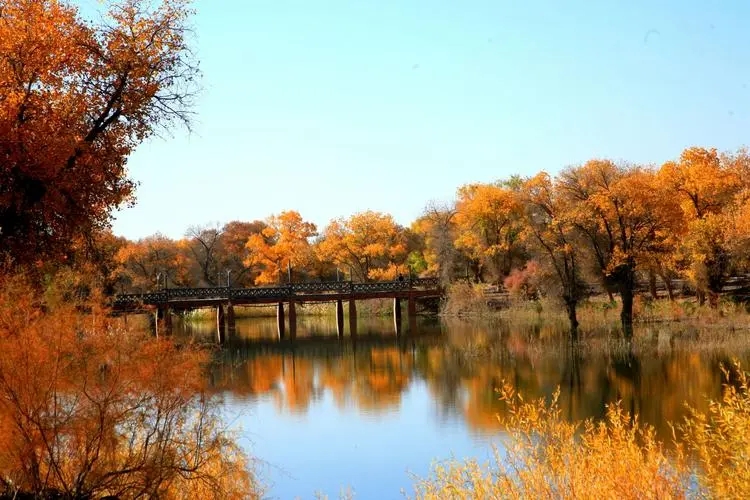 14:00—15:00 途径沙雅塔里木河大桥,桥头停车,参观与塔里木河相依为命的原始胡杨林