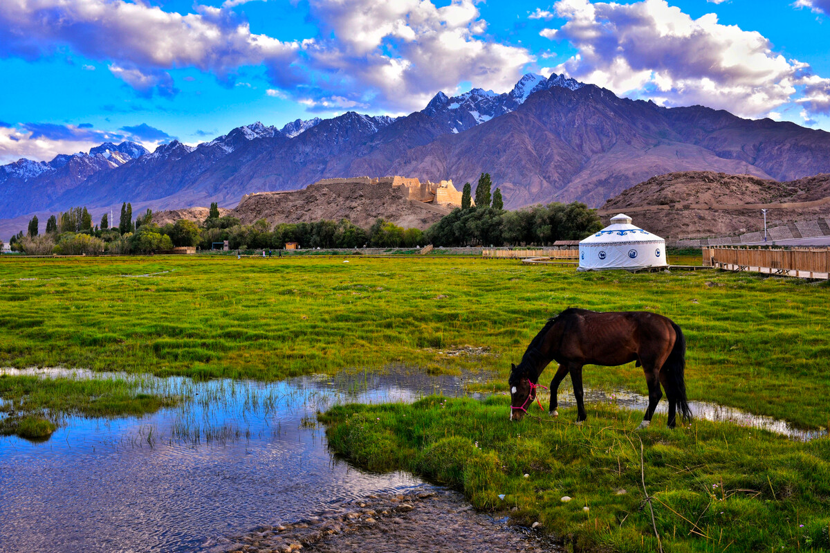 08:30—10:30 早餐后乘车前往阿拉尔金草滩,参观中国四大石城之一的塔什库尔干石头城