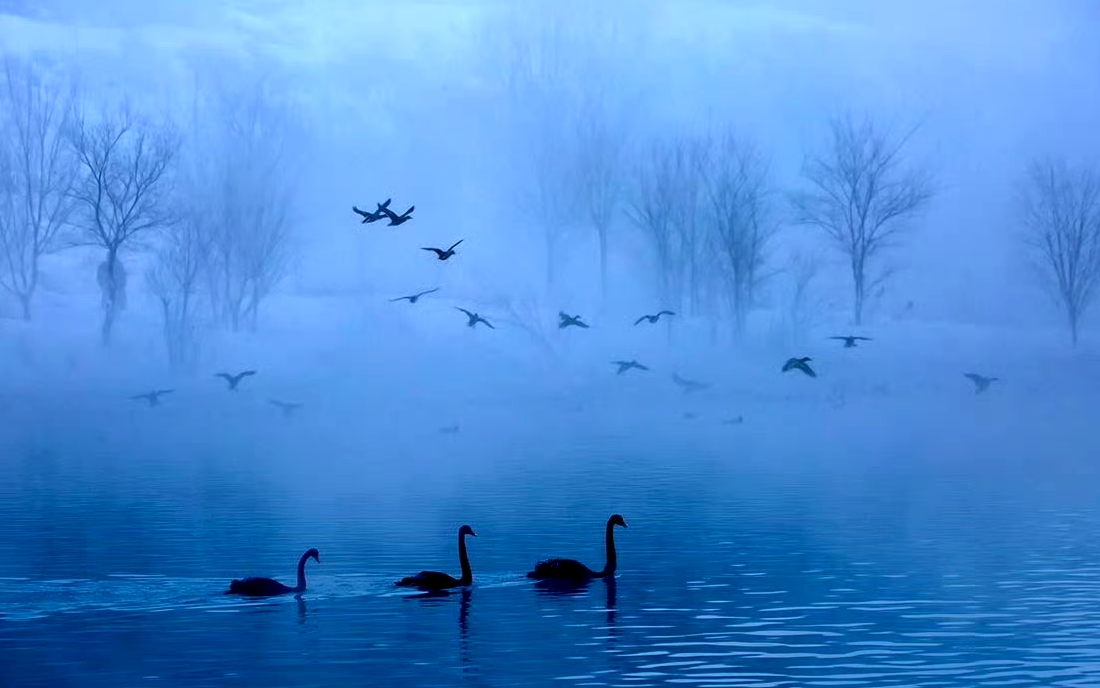 13:00—16:00 午餐后游览天鹅泉,天鹅泉属地下温泉,冬季不结冰,是河谷仅有的疣鼻天鹅越冬栖息地。冬季雪后的晨雾和雾凇,晨雾里的天鹅出双入对,有时会比出浪漫的心形,适合慢慢欣赏,拍照也很好看