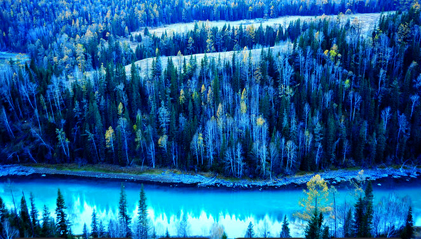 14:30—21:00 抵达喀纳斯村安排住宿后游览神仙湾、卧龙湾、月亮湾及大湖区