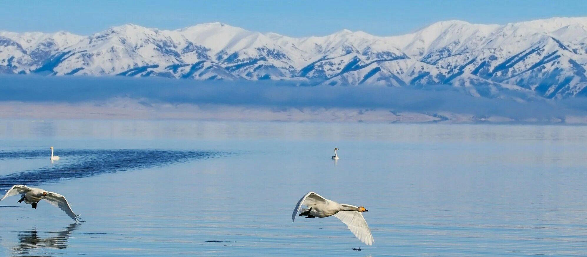 11:30—13:00 随着车辆进入景区,从地平线升起一抹蓝色,越来越宽阔的视野会毫无保留的展示赛里木湖的美,冬季会随着温度越来越低,赛里木湖的水面开始结冰,赛湖蓝冰,赛湖冰泡等各种奇观等着你的相遇!