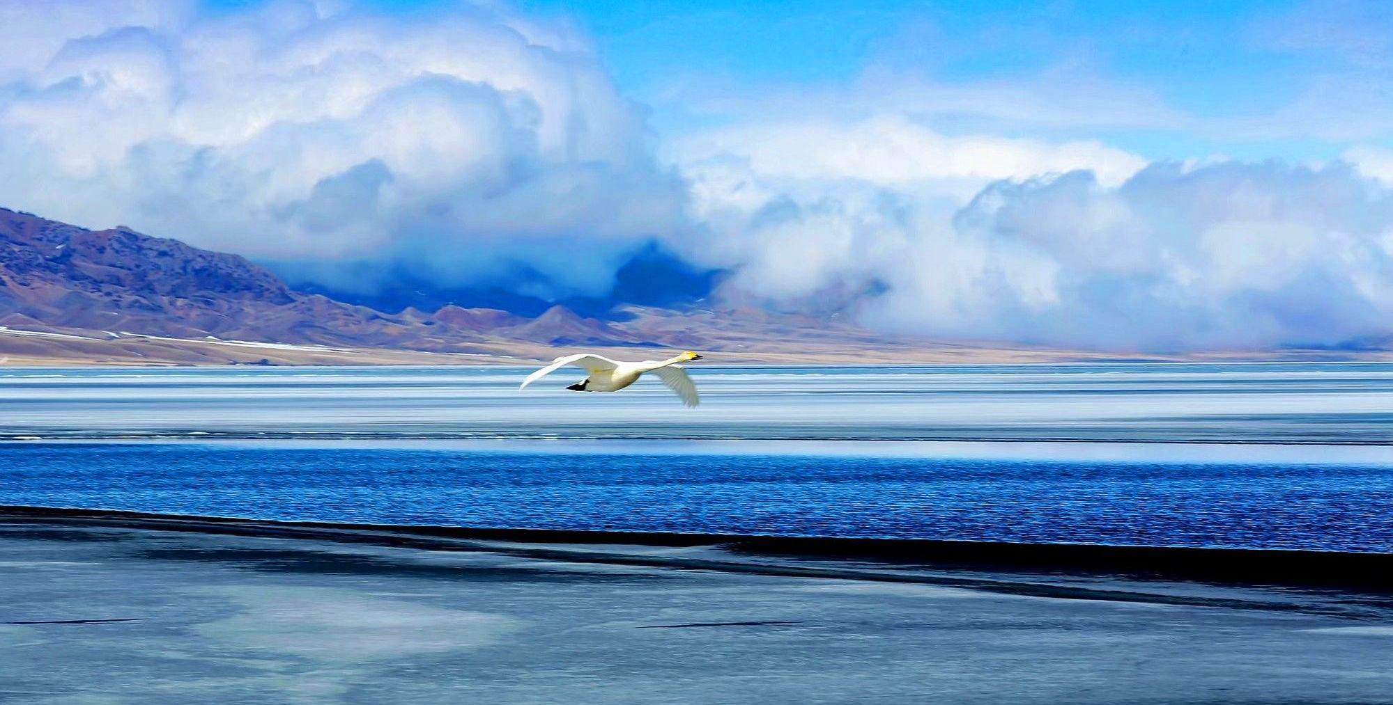 1.赛里木湖11月-12月初湖面冰还没有冻厚,一定不能随意踩冰前往湖面上。