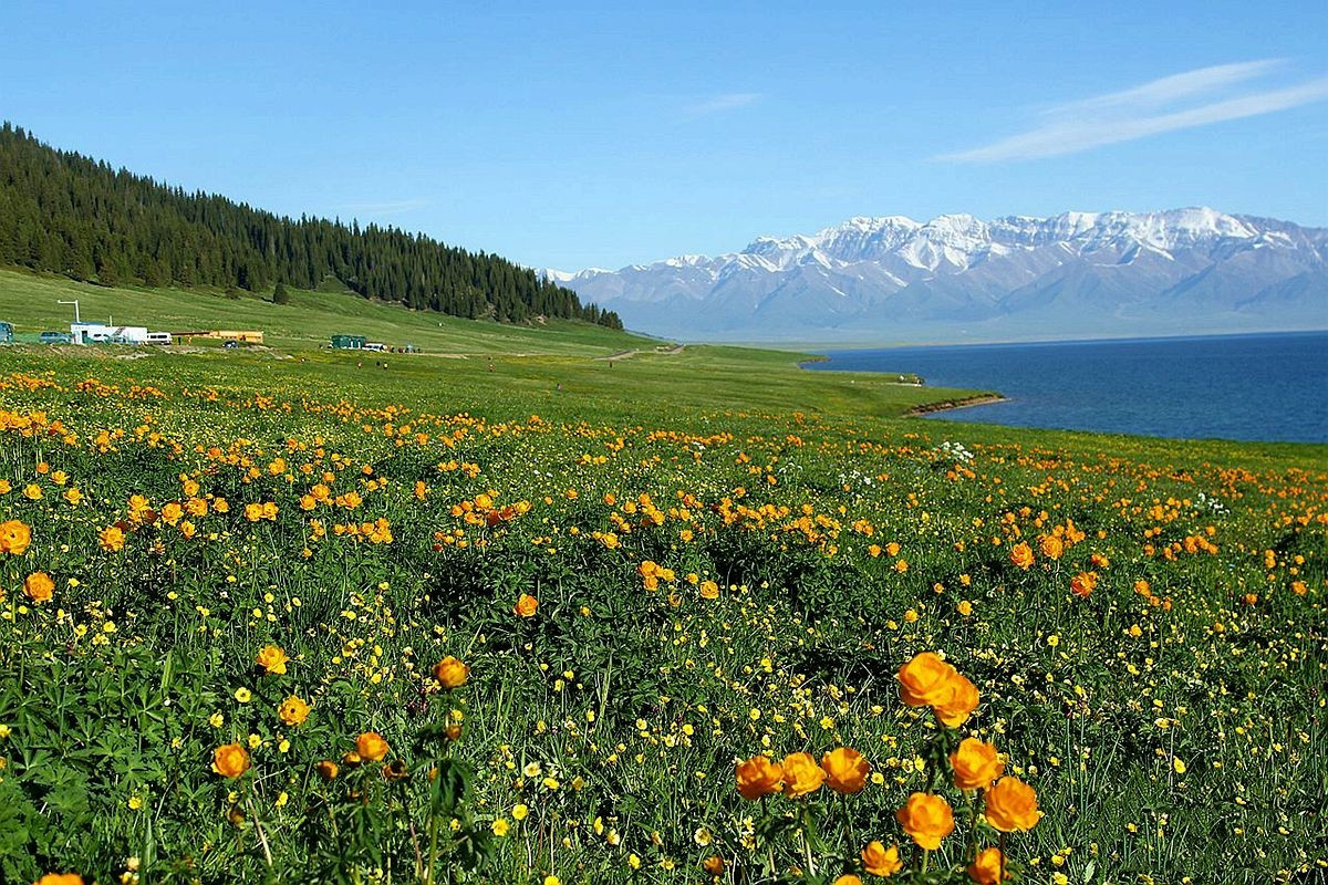 游玩亮点:赛里木湖在不同光线下呈现不同蓝色,6月左右湖边野花盛开,景色绝美。