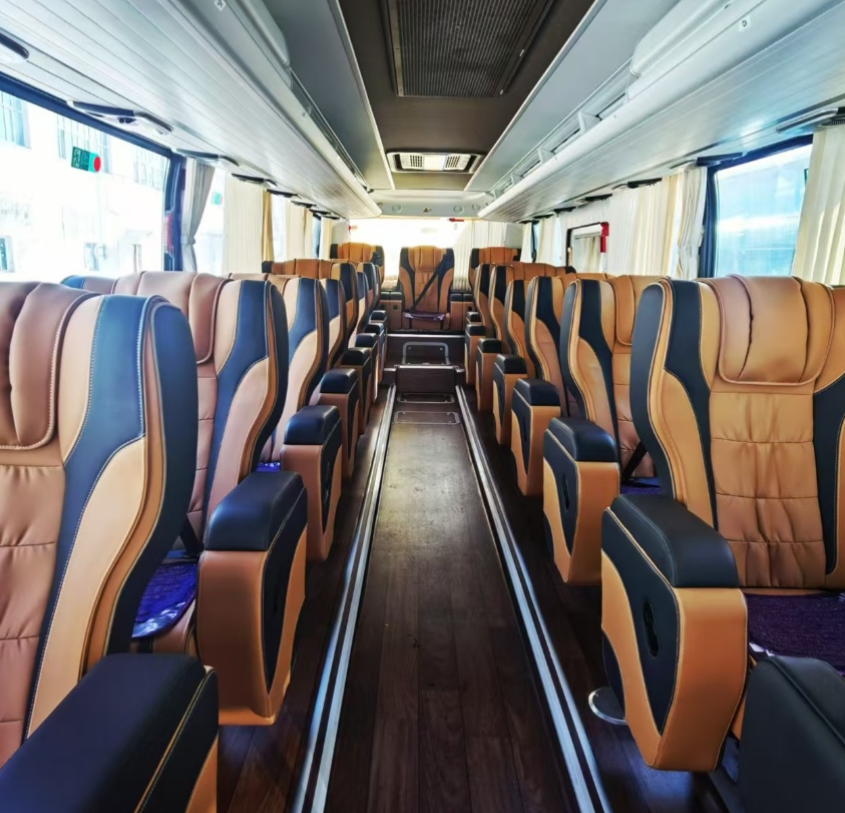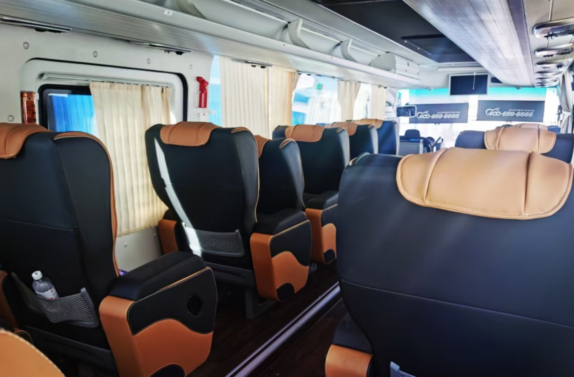 传统的旅游大巴车,空间拥挤,座椅硬邦邦,坐几个小时腰酸背痛。而现在的 17座“1+1”高端大巴车(常见车型为宇通、金龙或福田图雅诺),简直是颠覆性的存在: