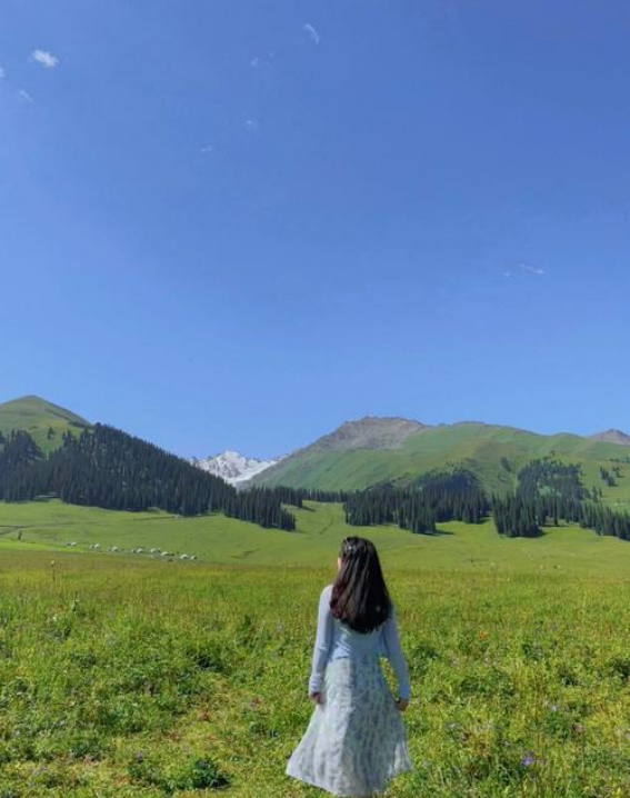 那拉提草原,就是那句“空中草原”的代名词。这里和云南的草原完全不同,它更加辽阔,远处的雪山线条更加硬朗。