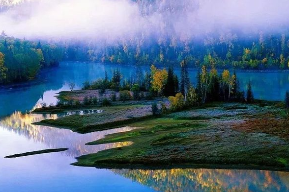 神仙湾:常有云雾缭绕,宛如仙境,与卧龙湾、月亮湾共同构成喀纳斯湖的三湾美景,景色各有千秋,是游客必打卡之地 。