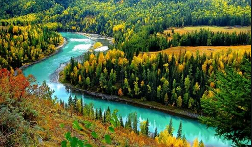 月亮湾:从卧龙湾沿喀纳斯河北上约1公里处,是镶在喀纳斯河的一颗明珠,会随喀纳斯湖水变化而变化 。