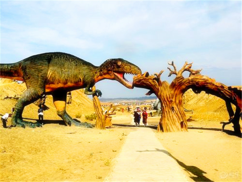 因出土大量恐龙化石而建有恐龙谷,还原了恐龙模型,可了解恐龙知识 。