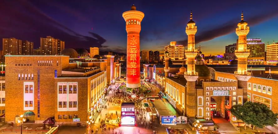 新疆,这片广袤富饶的土地,自古以来就是东西方文化的交汇之地。乌鲁木齐是丝绸之路上最重要的商贸节点之一,而新疆国际大巴扎则是乌鲁木齐众多巴扎中最大的一座,是城市最重要的商贸中心之一,它既是新疆商业繁荣的象征,也是文化交流的窗口。 巴扎为波斯语,意为集市,在维吾尔语中也是同样的意思。巴扎是城市中最热闹的商贸中心,在中、西亚的伊朗、土耳其以及中国的新疆等地,均有繁荣的巴扎。在特定的日期,城市周围的商贩会聚集到巴扎,市民们也会纷纷前来“赶巴扎”,这与中国传统的“赶集”是同一种形式。但是由于现代化生活方式的改变,“赶集”这种贸易方式在大城市中逐渐消失,而新疆的“巴扎”则因为其独特的民族特色而成为每座新疆城市最具吸引力的旅游景点。