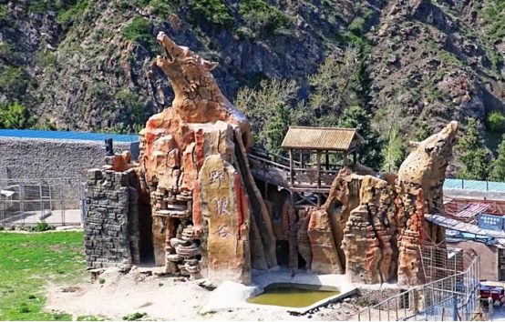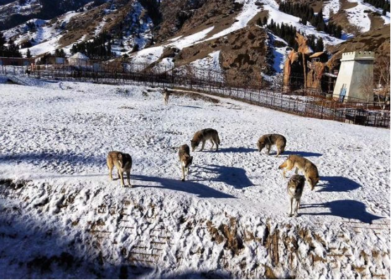 野狼谷入口处有一组褐色的石雕群,两只仰天长啸的野狼是其标志 。这里是目前新疆规模最大的养狼基地,饲养着西伯利亚黑狼、蒙古狼等多种狼 。