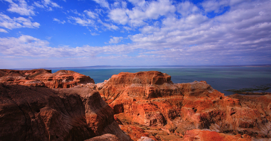 海滨与峡谷结合:地处吉力湖东岸,乌伦古湖入海口,既有海洋般开阔的海滨风光,又有峡谷的深邃神韵,两者结合给人强烈的视觉冲击 。